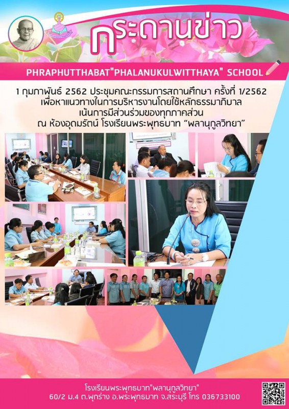 1 กุมภาพันธ์ 2562 ประชุมคณะกรรมการสถานศึกษา ครั้งที่ 1/2562 เพื่อหาแนวทางในการบริหารงานโดยใช้หลักธรรมาภิบาล