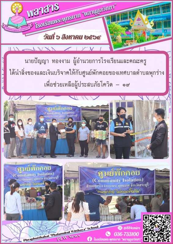มอบสิ่งของช่วยเหลือและเงินสนับสนุนจำนวน 1,000บาท ให้กับศูนย์พักคอย ต.พุกร่าง อ.พระพุทธบาท จ.สระบุรี