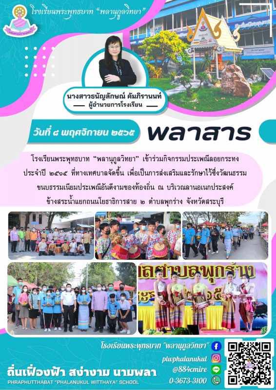 โรงเรียนพระพุทธบาท “พลานุกูลวิทยา” เข้าร่วมกิจกรรมประเพณีลอยกระทง ประจำปี ๒๕๖๕