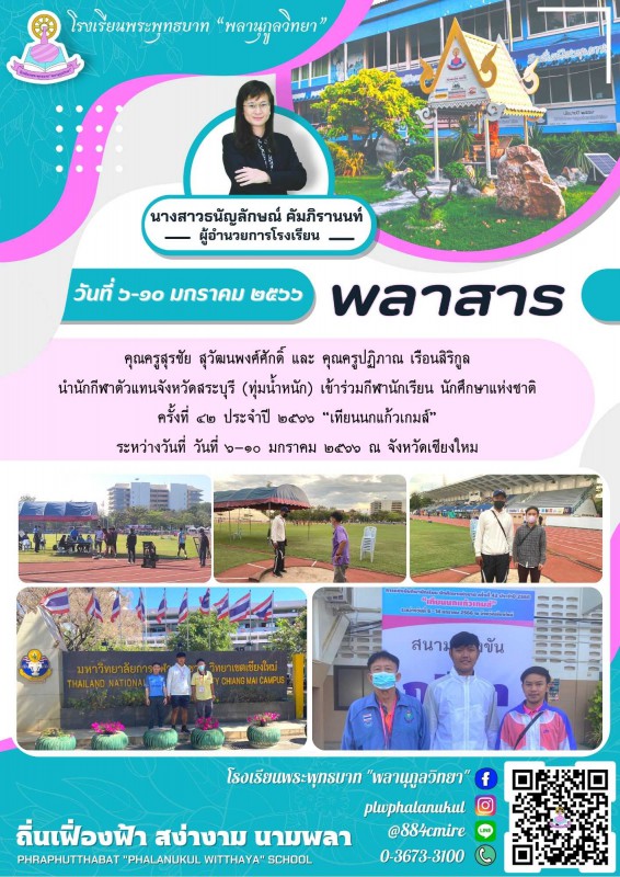 คุณครูสุรชัย สุวัฒนพงศ์ศักดิ์ และ คุณครูปฏิภาณ เรือนสิริกูล นำนักกีฬาตัวแทนจังหวัดสระบุรี (ทุ่มน้ำหนัก) เข้าร่วมกีฬานักเรียน นักศึกษาแห่งชาติ ครั้งที่ ๔๒ ประจำปี ๒๕๖๖ “เทียนนกแก้วเกมส์” ระหว่างวันที่ วันที่ ๖-๑๐ มกราคม ๒๕๖๖ ณ จังหวัดเชียงใหม