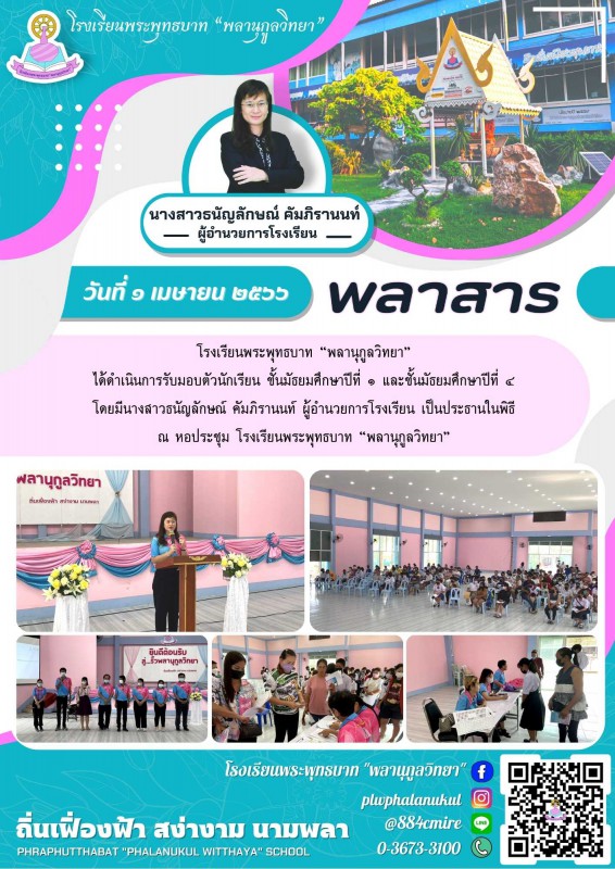 โรงเรียนพระพุทธบาท “พลานุกูลวิทยา” ได้ดำเนินการรับมอบตัวนักเรียน ชั้นมัธยมศึกษาปีที่ ๑ และชั้นมัธยมศึกษาปีที่ ๔