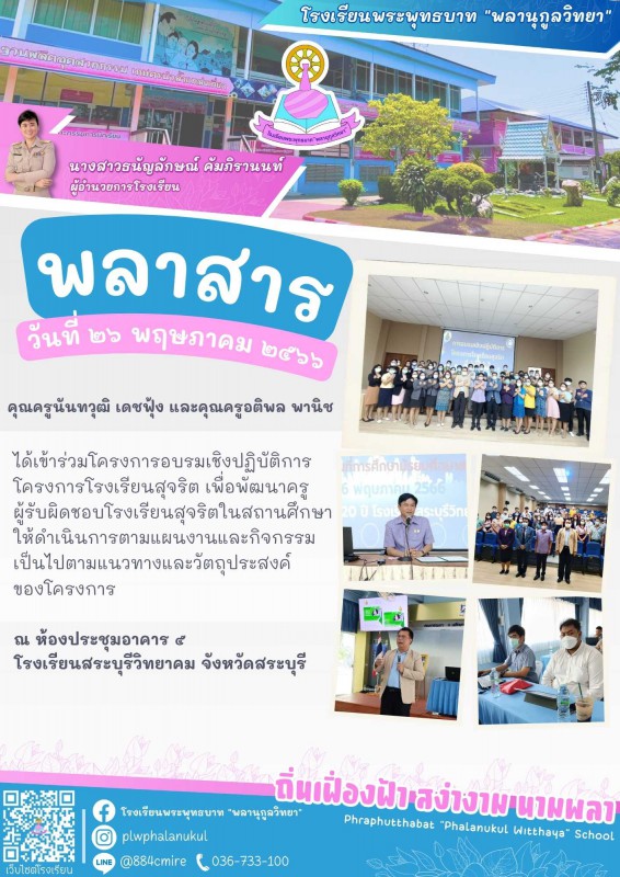 คุณครูนันทวุฒิ เดชฟุ้ง และคุณครูอติพล พานิช ได้เข้าร่วมโครงการอบรมเชิงปฏิบัติการ โครงการโรงเรียนสุจริต เพื่อพัฒนาครู ผู้รับผิดชอบโรงเรียนสุจริตในสถานศึกษา ให้ดำเนินการตามแผนงานและกิจกรรม เป็นไปตามแนวทางและวัตถุประสงค์ ของโครงการ ณ ห้องประชุมอาคาร ๕ โรงเร