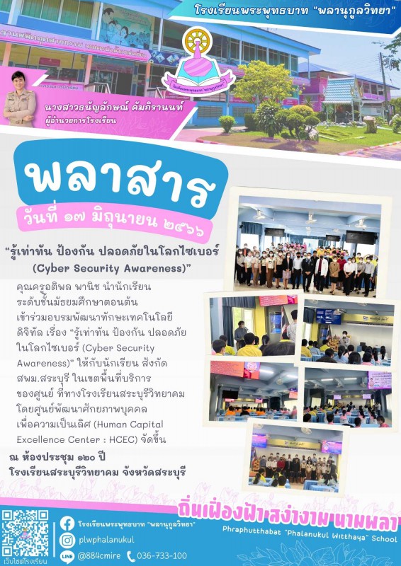 คุณครูอติพล พานิช นำนักเรียน ระดับชั้นมัธยมศึกษาตอนต้น เข้าร่วมอบรมพัฒนาทักษะเทคโนโลยีดิจิทัล เรื่อง “รู้เท่าทัน ป้องกัน ปลอดภัยในโลกไซเบอร์ (Cyber Security Awareness)” ให้กับนักเรียน สังกัด สพม.สระบุรี ในเขตพื้นที่บริการ ของศูนย์ ที่ทางโรงเรียนสระบุรีวิท