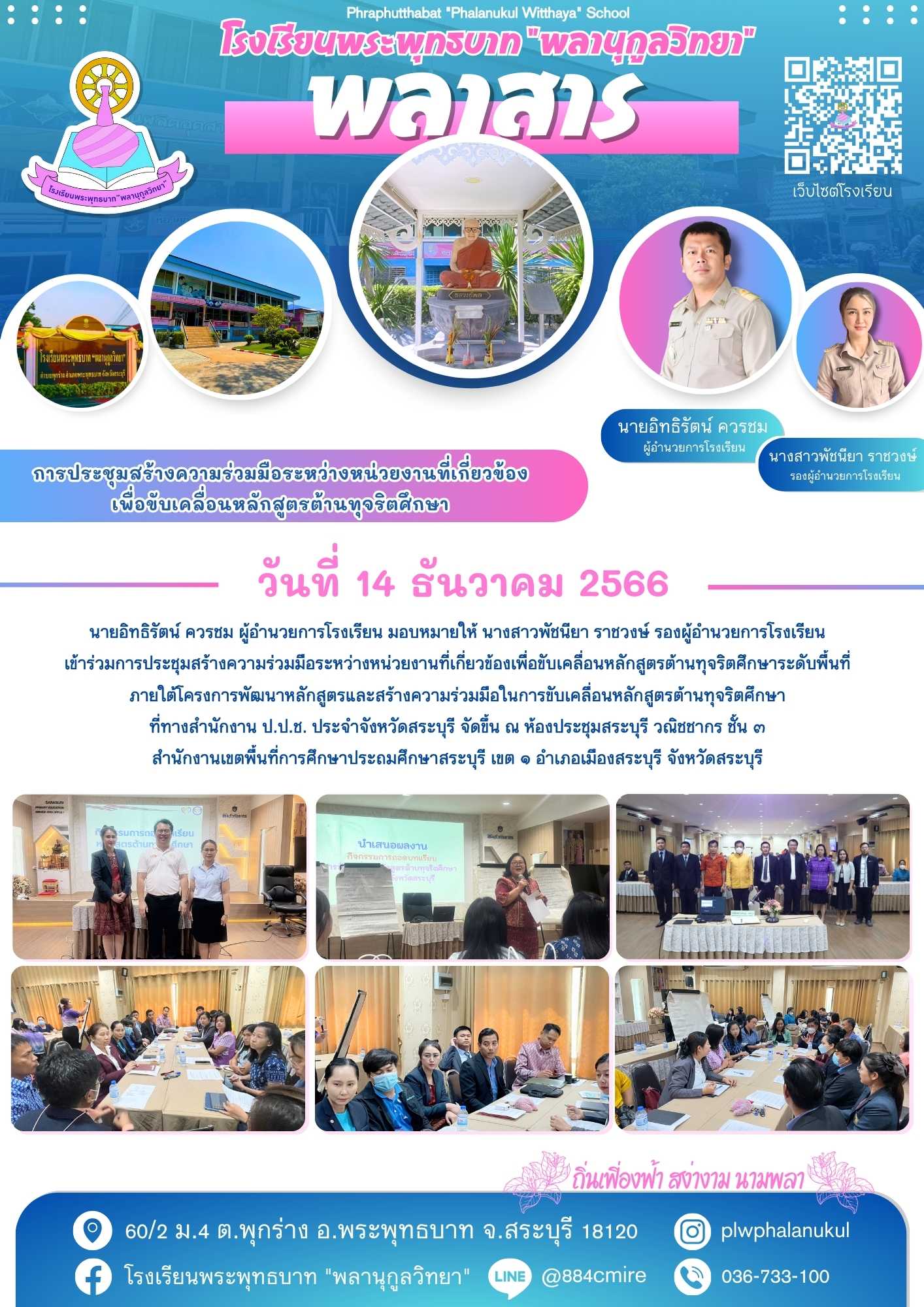 การประชุมสร้างความร่วมมือระหว่างหน่วยงานที่เกี่ยวข้อง เพื่อขับเคลื่อนหลักสูตรต้านทุจริตศึกษา