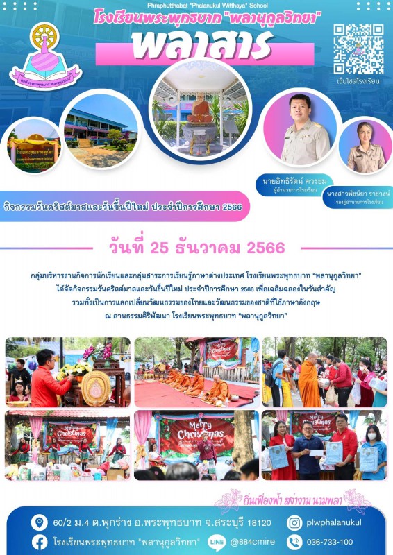 กลุ่มบริหารงานกิจการนักเรียนและกลุ่มสาระการเรียนรู้ภาษาต่างประเทศ โรงเรียนพระพุทธบาท “พลานุกูลวิทยา” ได้จัดกิจกรรมวันคริสต์มาสและวันขึ้นปีใหม่ ประจำปีการศึกษา 2566