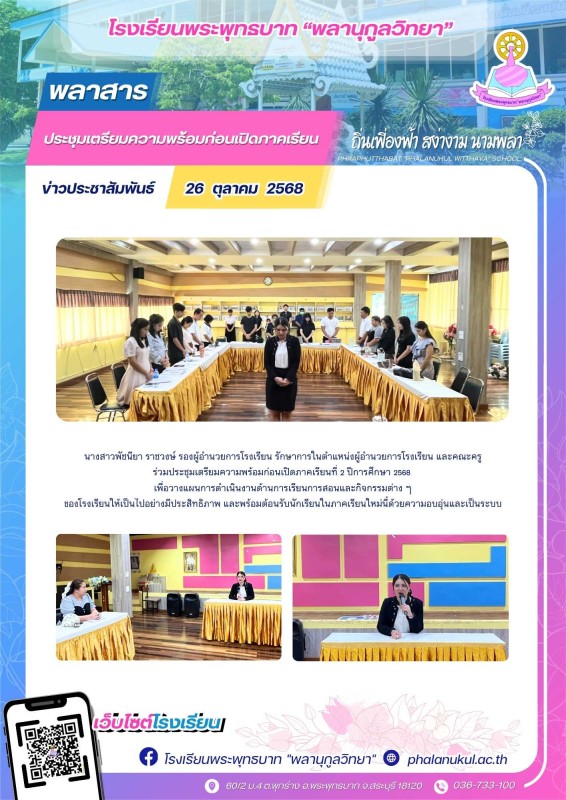 นางสาวพัชนียา ราชวงษ์ รองผู้อำนวยการโรงเรียน รักษาการในตำแหน่งผู้อำนวยการโรงเรียน และคณะครู ร่วมประชุมเตรียมความพร้อมก่อนเปิดภาคเรียนที่ 2 ปีการศึกษา 2568 เพื่อวางแผนการดำเนินงานด้านการเรียนการสอนและกิจกรรมต่าง ๆ ของโรงเรียนให้เป็นไปอย่างมีประสิทธิภาพ แล