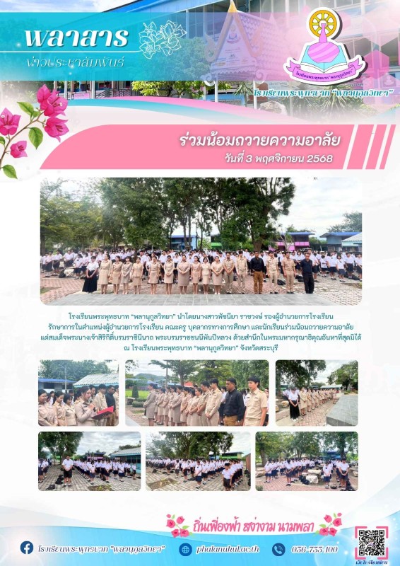 โรงเรียนพระพุทธบาท “พลานุกูลวิทยา” นำโดยนางสาวพัชนียา ราชวงษ์ รองผู้อำนวยการโรงเรียน รักษาการในตำแหน่งผู้อำนวยการโรงเรียน คณะครู บุคลากรทางการศึกษา และนักเรียนร่วมน้อมถวายความอาลัย แด่สมเด็จพระนางเจ้าสิริกิติ์บรมราชินีนาถ พระบรมราชชนนีพันปีหลวง ด้วยสำนึกใ