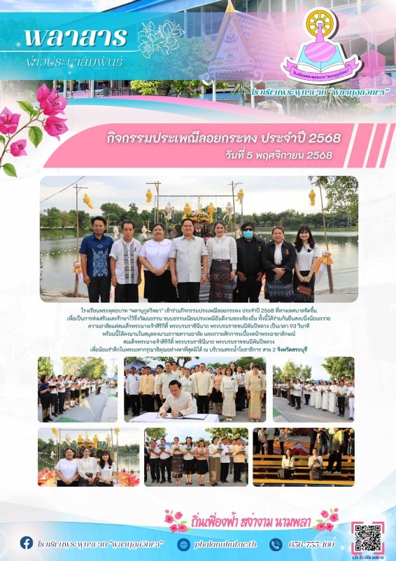 โรงเรียนพระพุทธบาท “พลานุกูลวิทยา” เข้าร่วมกิจกรรมประเพณีลอยกระทง ประจำปี 2568 ที่ทางเทศบาลจัดขึ้น เพื่อเป็นการส่งเสริมและรักษาไว้ซึ่งวัฒนธรรม ขนบธรรมเนียมประเพณีอันดีงามของท้องถิ่น ทั้งนี้ได้ร่วมกันยืนสงบนิ่งน้อมถวาย ความอาลัยแด่สมเด็จพระนางเจ้าสิริกิติ์