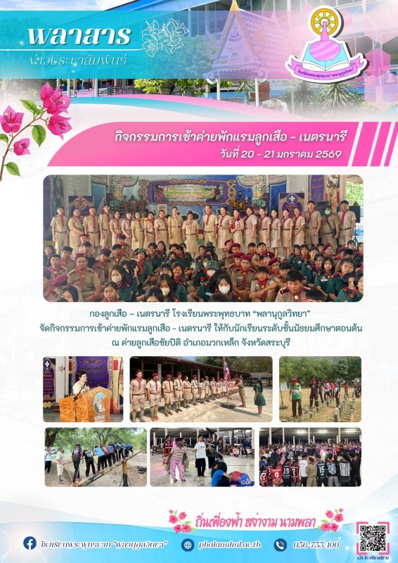 กองลูกเสือ – เนตรนารี โรงเรียนพระพุทธบาท “พลานุกูลวิทยา” จัดกิจกรรมการเข้าค่ายพักแรมลูกเสือ - เนตรนารี ให้กับนักเรียนระดับชั้นมัธยมศึกษาตอนต้น ณ ค่ายลูกเสือชัยปิติ อําเภอมวกเหล็ก จังหวัดสระบุรี
