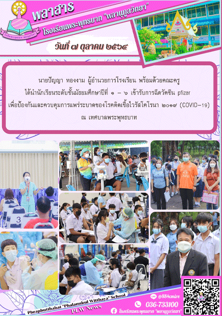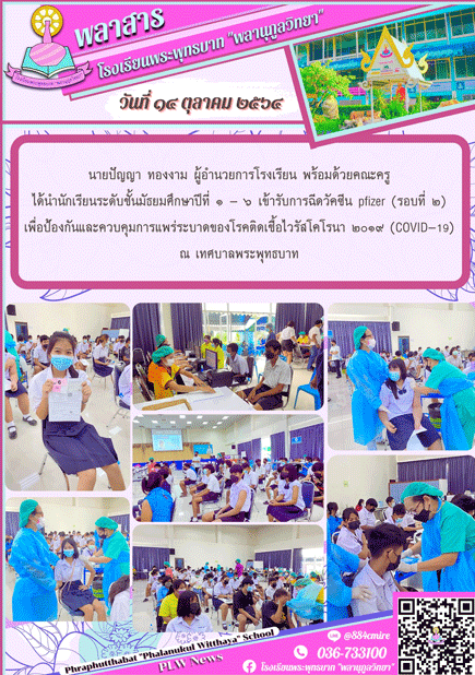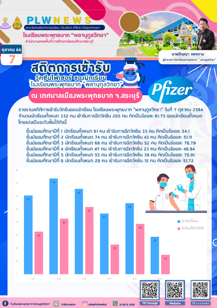 รายงานสถิติการเข้ารับวัคซีนของนักเรียน โรงเรียนพระพุทธบาท