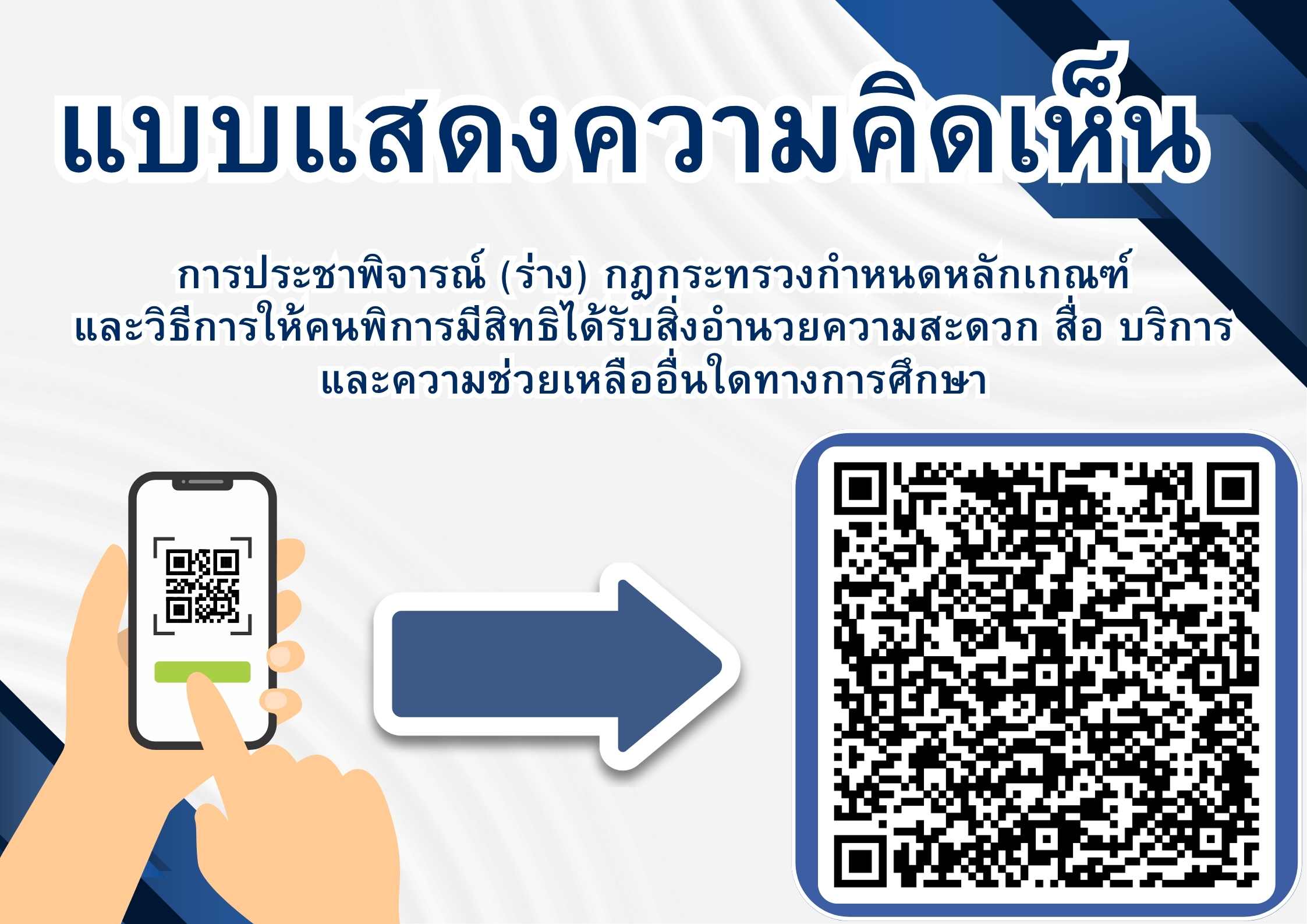 แบบแสดงความคิดเห็นการประชาพิจารณ์ (ร่าง) กฎกระทรวงกำหนดหลักเกณฑ์และวิธีการให้คนพิการมีสิทธิได้รับสิ่งอำนวยความสะดวก สื่อ บริการ และความช่วยเหลืออื่นใดทางการศึกษา