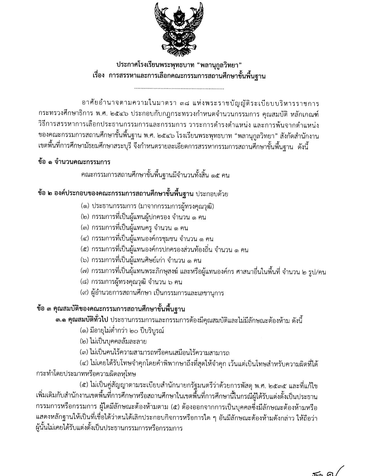 โรงเรียนพระพุทธบาท "พลานุกูลวิทยา" ประกาศรับสมัคร กรรมการสถานศึกษาขั้นพื้นฐาน